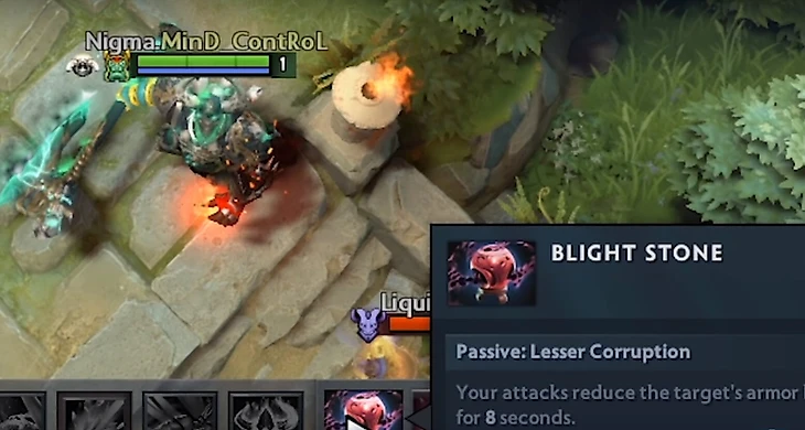 На первые деньги обязательно нужно купить Блайтстоун. Он отлично стакается с первым скиллом – на первом уровне вы будете срезать 4 брони у противника. Если на линии с вами есть другой герой, который наносит физический урон, то противникам будет очень сложно.