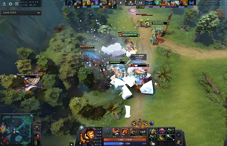 Геймплей предельно простой – постоянно используйте первый скилл, перемещайтесь по карте,ставьте глубокие варды, старайтесь убить курьера или зовите напарника на помощь и гангайте врагов.