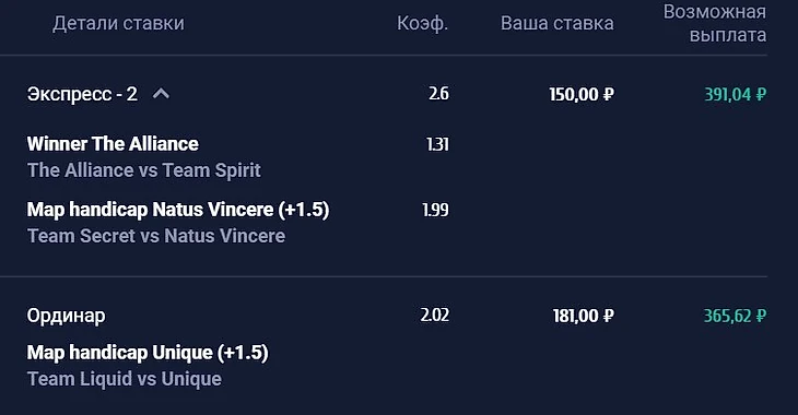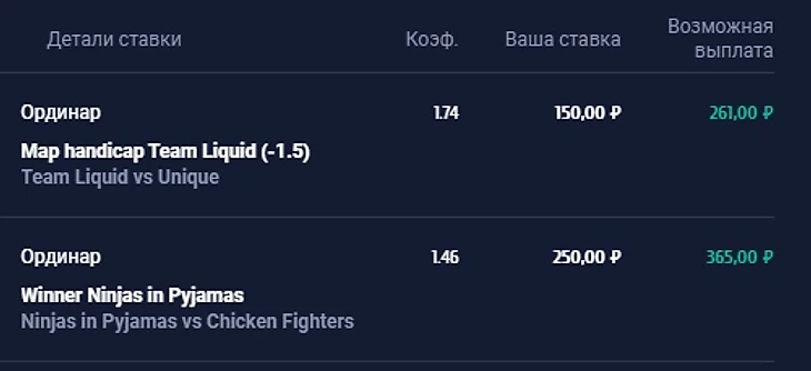 Team Liquid vs Unique (-1.5 Team Liquid) / 150 рублей / 1,74