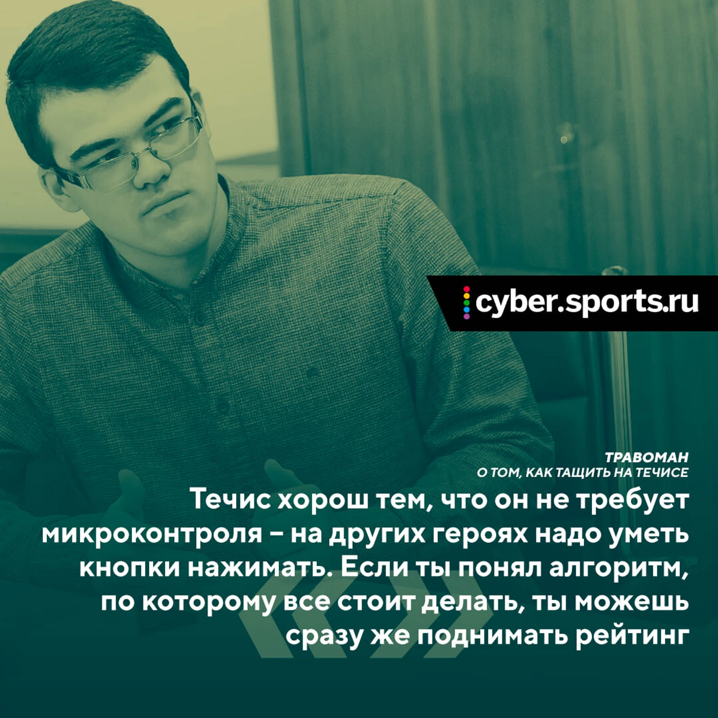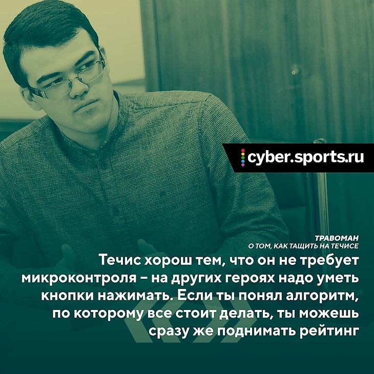 – Я не помню никаких эмоций в отношении Течиса. Не было ни позитива, ни негатива. Просто этого героя не замечал, потому что его редко пикали тогда. Но знал, что это фановый герой, поэтому после лузстрика выбор пал на него.