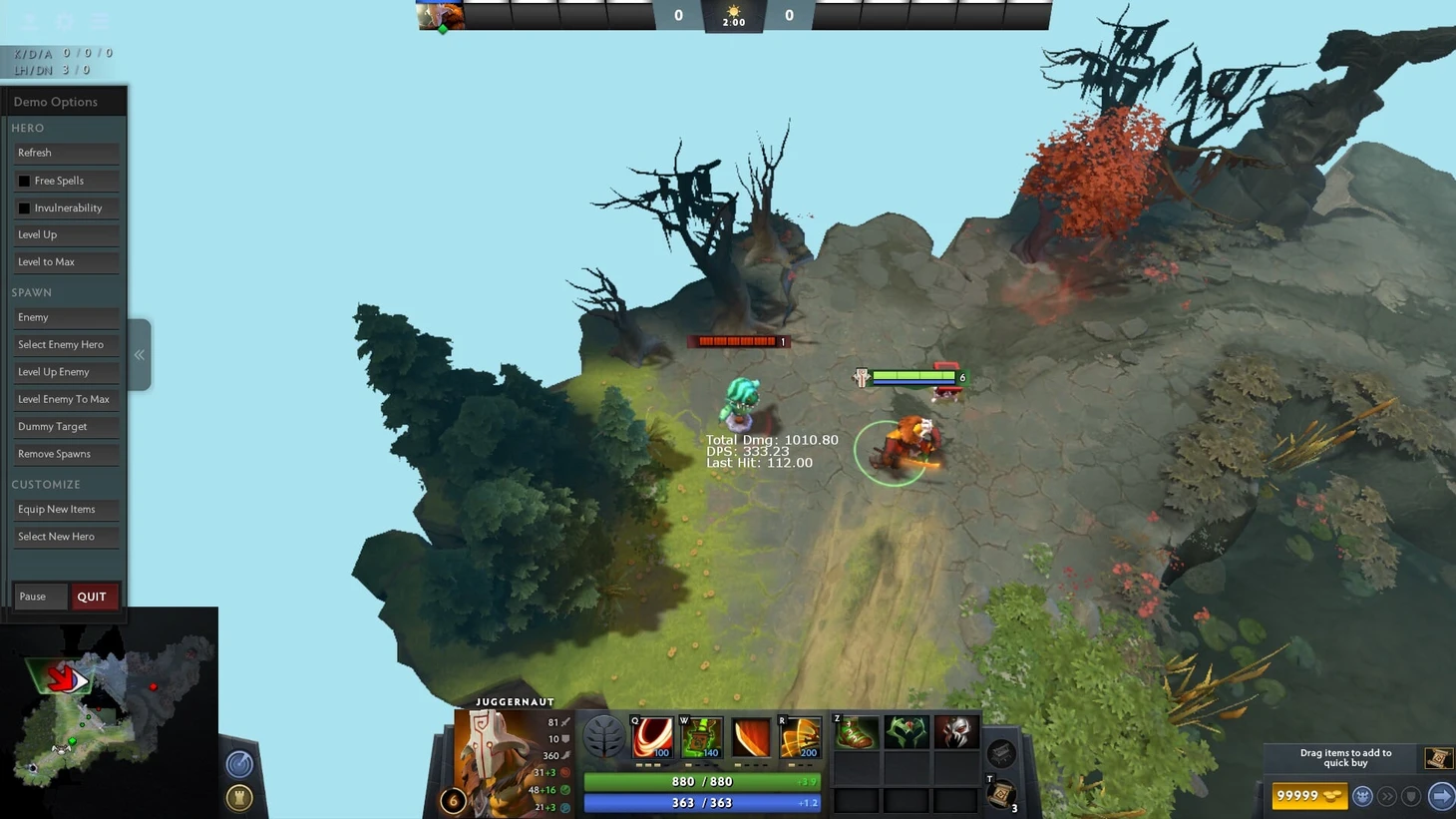 Крипы в лесу могут попадаться разные, поэтому для чистоты эксперимента я сделал 3 замера. Лучший и худший выбывают, средний идет в итоговый результат. Маршрут Джаггернаутов идентичен.