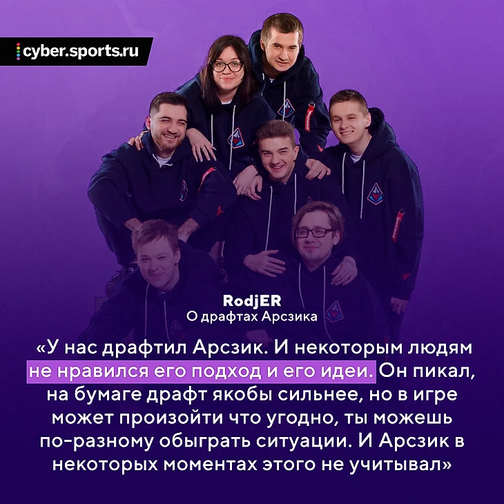 – Допустим, у нас драфтил Арсзик. И некоторым людям не нравился его подход и его идеи. Он пикал, на бумаге драфт якобы сильнее, но в игре может произойти что угодно, ты можешь по-разному обыграть ситуации. И Арсзик в некоторых моментах этого не учитывал. Но я не могу сказать, что он проделал плохую работу. Он много занимался драфтами.