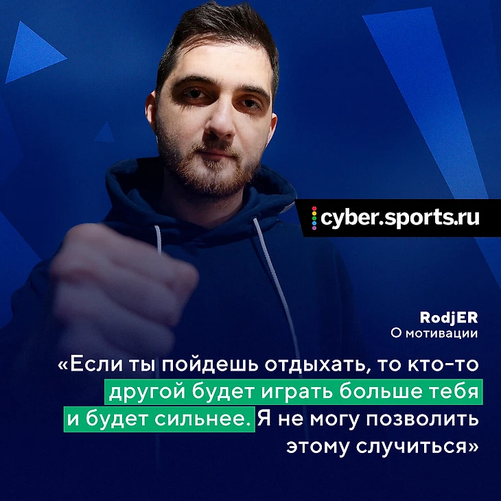 Все зависит от мотивации. Если ты пойдешь отдыхать, то кто-то другой будет играть больше тебя и будет сильнее. Я не могу позволить этому случиться. Я продолжаю играть, смотреть реплеи, тренироваться. Есть мотивация всем этим заниматься.