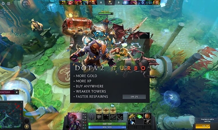 Только All Pick. Из всех режимов настоятельно рекомендую играть именно в него. Почему? Первые 17 часов я играл в Турбо и это очень быстро надоедает и утомляет. Именно количество игр, а также ответственность игроков. Да, побеждать в паблике менее мотивированно, чем в RMM, но все же, 100 часов геймплея проводить за проигрышами с тремя лесниками (а в Турбо каждая третья игра такая и это не шутки) – довольно сложно. Можно поиграть несколько часов в Турбо. И даже возможно, что в первое время все будет нравится, но вот потом это все быстро надоест.