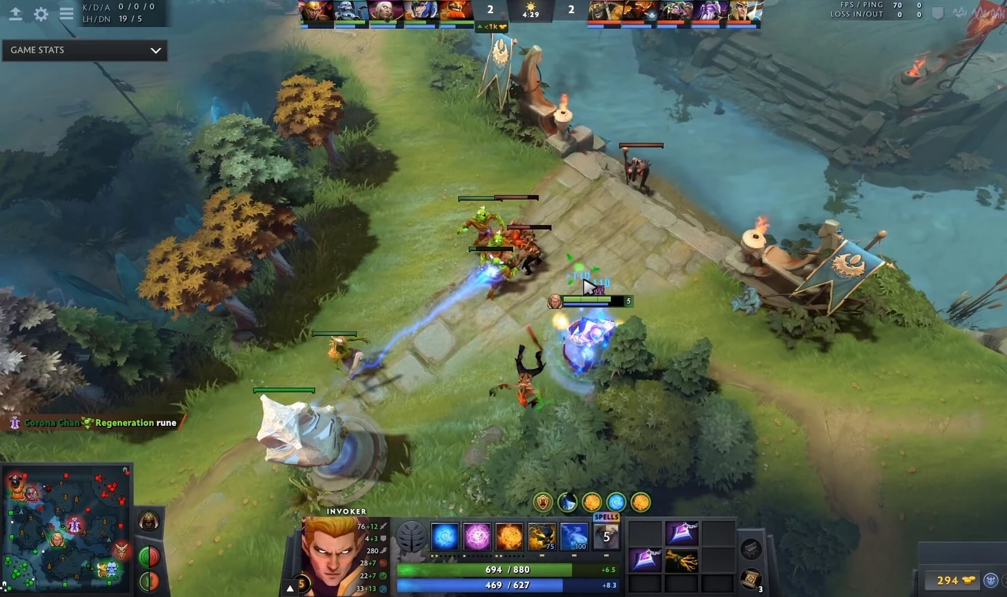 Если вы играете на Инвокере против Войд Спирита, то вы вряд ли сможете убить его при равных нетворсах. Не нужно тратить свои скиллы в него, ведь на карте есть герои, которых вы можете убить гарантированно. Второй вариант – отпушить линию метеором, уйти в лес и ждать момента для санстрайка. Если вы попытаетесь давить героев, которых вы не можете убить, то в лучшем случае вы просто потратите ману и время, а в худшем – умрете.