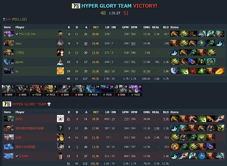 В апреле 2014 года на китайском турнире WVW National Electronic Sports в четвертьфинале встретились LGD и HGT. Это был всего шестой турнир для новой организации HyperGloryTeam, за которую выступал ветеран ZSMJ. На первой карте HGT взяла себе Фуриона-керри и легко обыграла своего соперника, а вот на второй карте началась настоящая китайская Дота – обе команды играли вокруг своего керри, первая Т3 упала на 61-й минуте, а Спектра и Вивер добили больше 1700 крипов на двоих.
