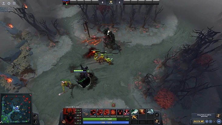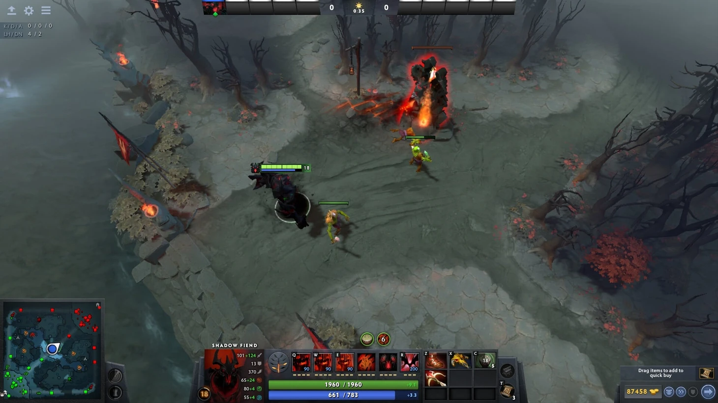 Начинаем с первой пачкой крипов и без душ. Задача – сломать Т1. Денаим крипов, чтобы получить души и урон.