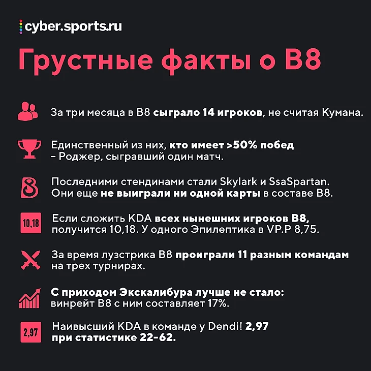 Да, мы скептически относились к составу B8, но не подозревали, что команда Dendi установит антирекорд по проигранным картам подряд.
