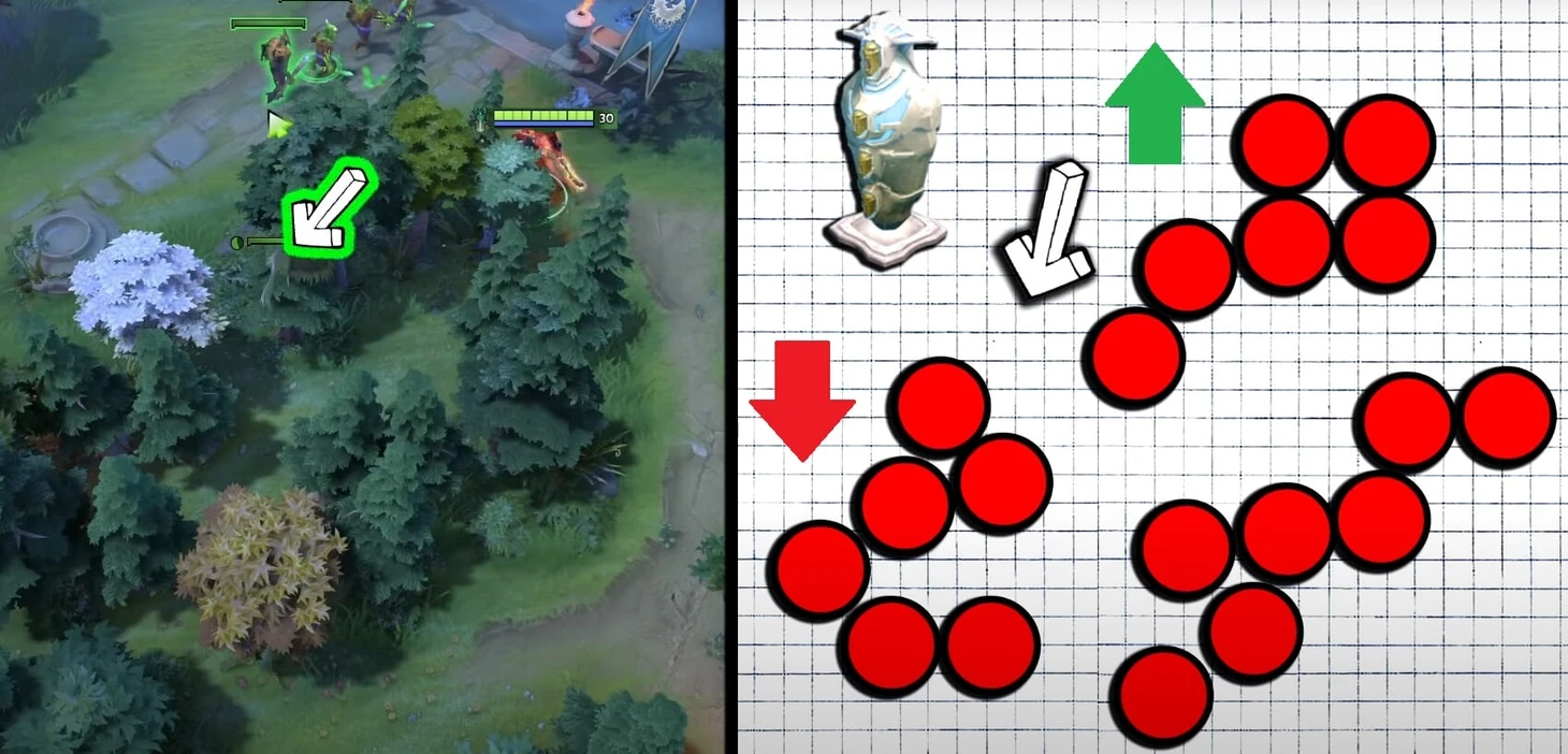 Если дайвите в лес, то делайте это только вдвоем. У этого леса есть два выхода, поэтому противник легко скроется от одного героя.