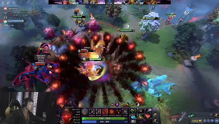 Нельзя сказать, что у Симпла получалось играть в Доту так же хорошо, как и в CS. В этом моменте мимо улетели вообще все скиллы, кроме Cold Snap.
