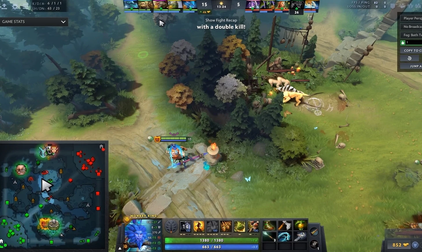 Еще один плюс МК – мобильность. Gorgc убил Тимбера, который пытался отводить крипов, а потом пошел фармить мид, а не вернулся на легкую, ведь с мида гораздо проще сделать перетяжку на другую линию. Через несколько секунд он уже принимал участие в драке на топе, и это помогло ему засноуболить.
