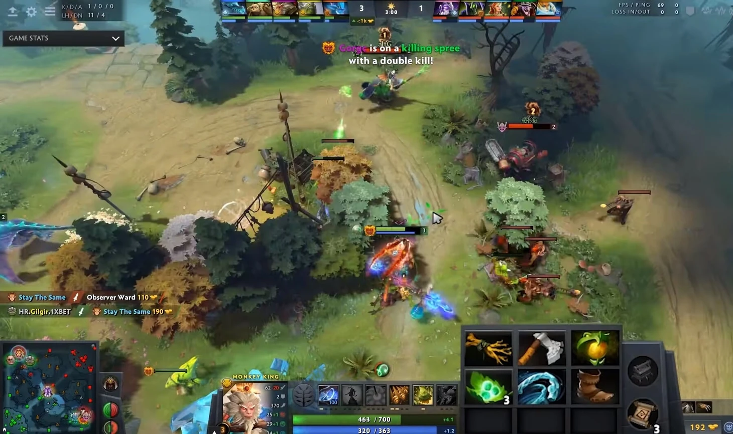 Он может пойти и на мид, и на легкую линию, но самое главное – очень мало героев могут комфортно стоять против МК. Не нужно агрессивно набивать пассивку, если противник уходит. На первые деньги от убийства Gorgc принес себе Wind Lace и сапог. Он не стал покупать статы, ведь он прекрасно понимает, что именно скорость передвижения поможет ему зарядить пассивку на выгодной линии.