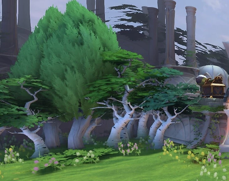 Вот и вышел Battle Pass 2020, а с ним и новый ландшафт, где большая часть половины Radiant усеяна березами. При этом почти все деревья на базе сил Света – березы.