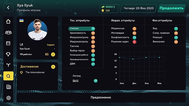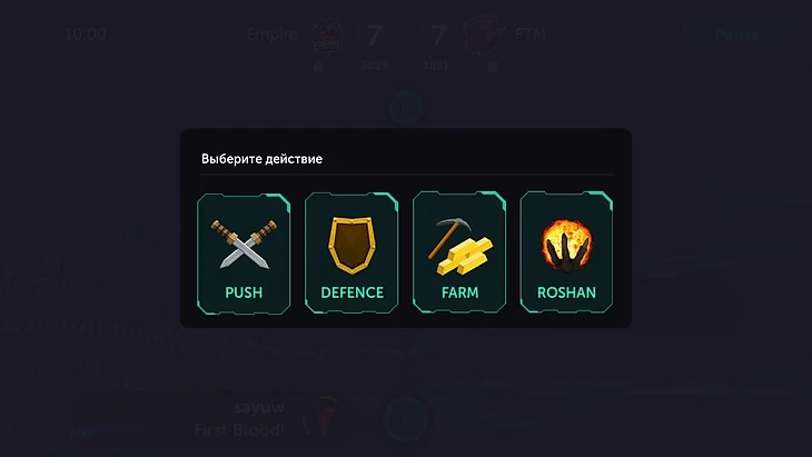 А это ведь главный тригер любого менеджера. Здесь нет ощущения, что ты на что-то влияешь. По сути, это не менеджер, а кликер, где нужно фармить очки тренировок путем нажатия кнопки «следующий день». Раскачиваешь любых игроков – побеждаешь «в Доту». Решения каждые 10 минут во время карты не приводят игрока к очевидным последствиям. Вот я нажал «Фарм» – и у меня прибавилось 500 золота. Окей, а насколько нетворс важен при определении победителя? Как обыграть более сильную команду? Что я должен сделать, чтобы у меня хотя бы появился шанс не проиграть EG?