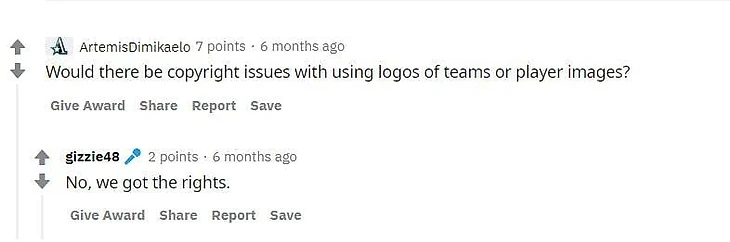 Получили ли создатели права на игроков и логотипы? Полгода назад они писали на Реддите, что все в порядке: