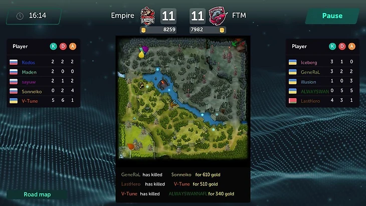 Сырость игры чувствуется и здесь. События, отображаемые в этих режимах, не совпадают друг с другом. Так, мне написали в сводке, что Iceberg сделал Rampage, в то время как в режиме карты он бегал со счетом 1-0-1.