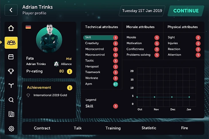 Симуляторы киберспортивного менеджера плодятся в арифметической прогрессии. В одном только Стиме можно найти с десяток разных (на самом деле – до жути одинаковых) вариаций. Все они брали за основу Лигу Легенд – роли игроков, турнирную систему и даже анимации героев и карту.