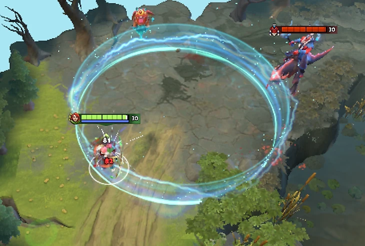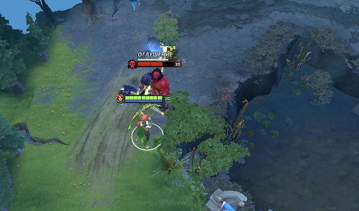 Начну с самого сложного, эффектного и эффективного применения Iron Branch. Всем известно, что Shackleshot связывает героев с крипами/другими героями/деревьями на довольно длительное время. Но если героя связать не с чем и не с кем, то время связки сокращается лишь до 0.75 сек, что крайне мало, не так ли? И смысл уже от применения данной способности почти полностью теряется.