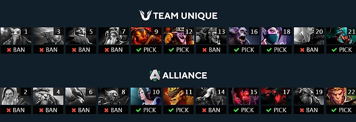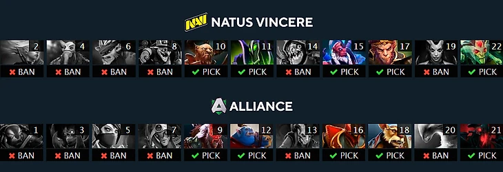В матче против NAVI Альянс забрали СФ’а на 21-й, а Нави ответили Медузой. В итоге на центр пошел ДК, а не СФ.