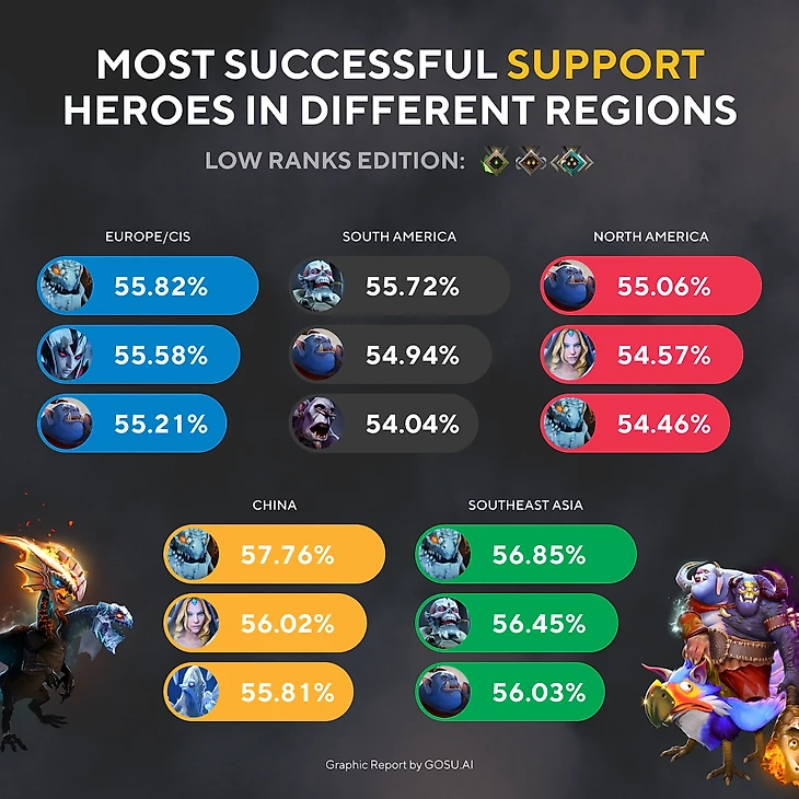 Самые успешные саппорты в разных регионах. Низкий рейтинг