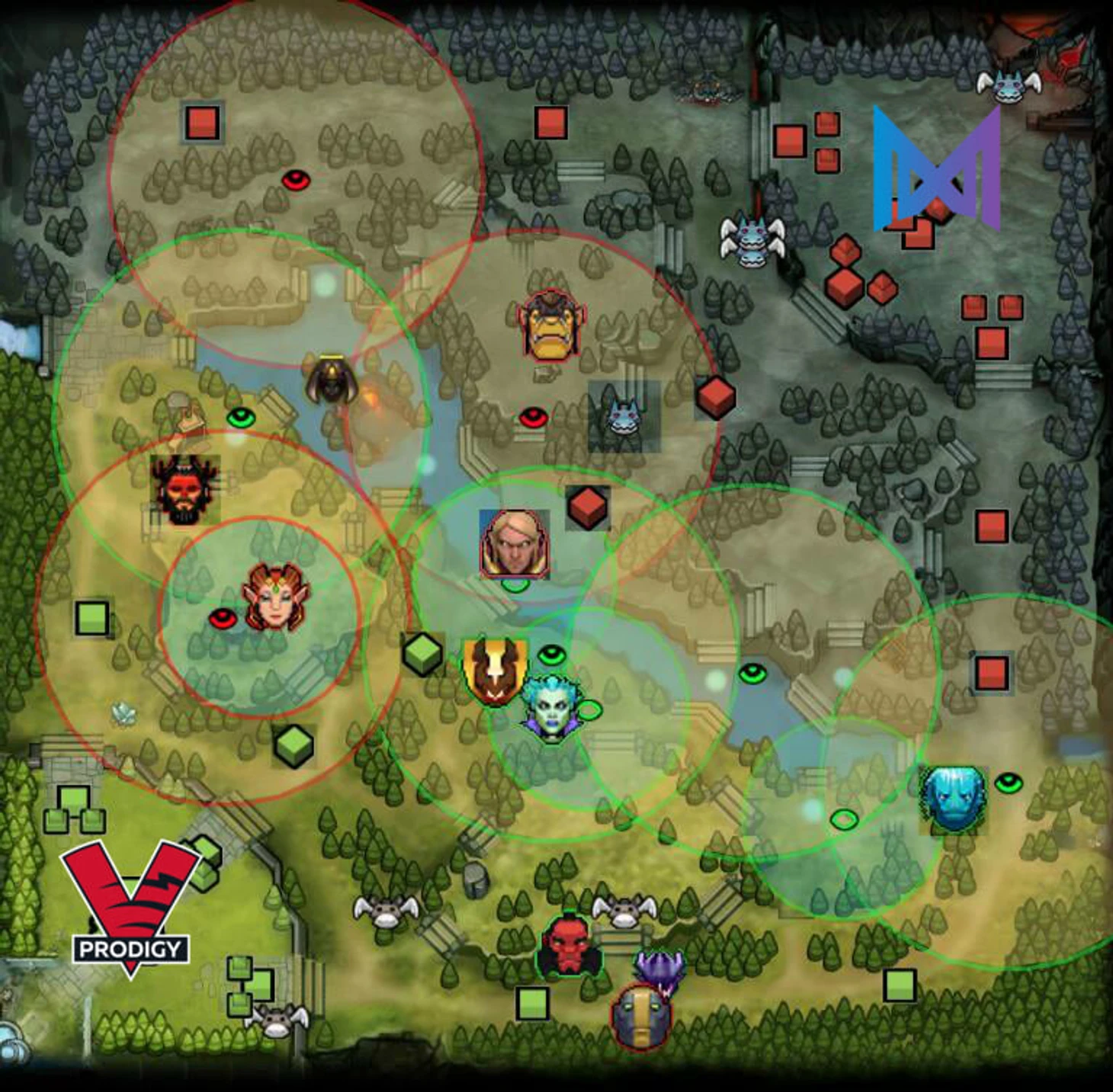 Все входы в лес Алхимика закрыты вардами, а Бист занял лучший плацдарм для смок-ганга и активно фармит половину Продиджи. Единственный вариант достать Миракла – смок в лесу Radiant с заходом через треугольник, но это слишком долгий, а поэтому очевидный план. Имеем ситуацию, где Nigma защищают фармящего Алхимика... своим фармом.
