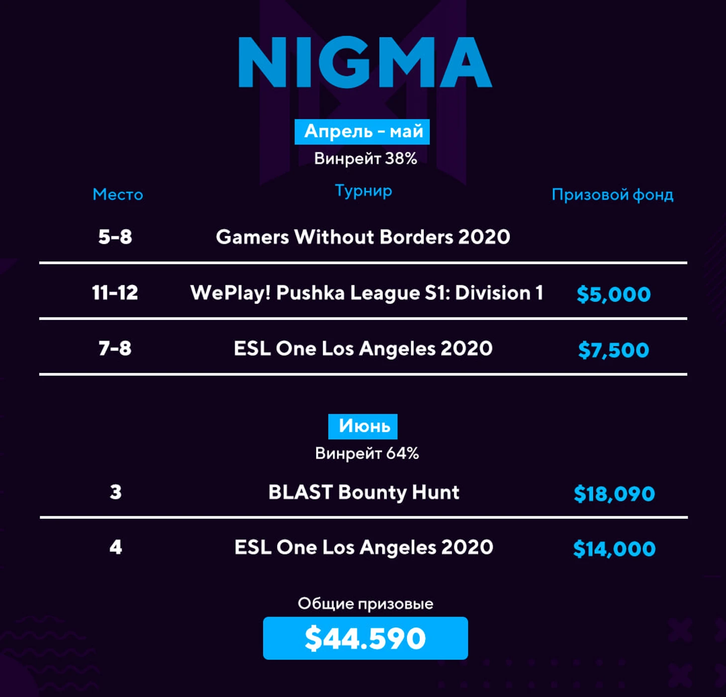 Да, Nigma сейчас точно не первая команда Европы и, возможно, даже не вторая. Но команда точно пришла в себя после ужасных результатов в апреле и мае. Nigma приспособились к игре в онлайне, что точно поможет им после возобновления DPC-сезона.