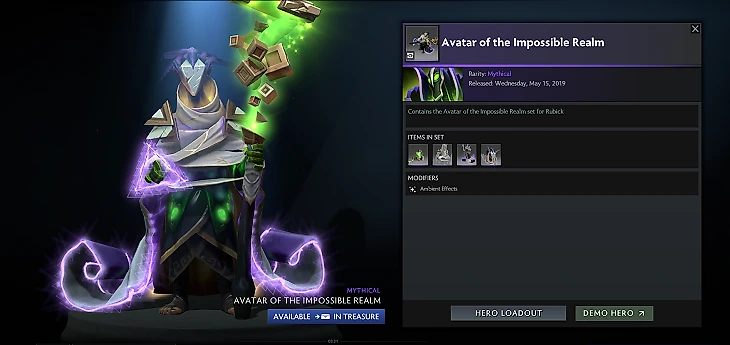Valve продолжили традицию с тремя редкими предметами. В 2018 году ими стали сеты на Варлока, Расту и Гирокоптера.