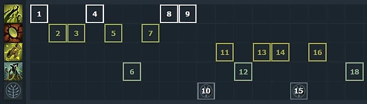 15-й уровень – урон от Лозы, 20-й – на ваше усмотрение, но я предпочитаю урон/лечение Leech Seed: с ним у нас 100 регена в секунду в драке. На 25-м, опять же, нужно смотреть по ситуации. Если противникам трудно выйти из корней, можно взять урон, чаще стоит взять Living Armor в аое.