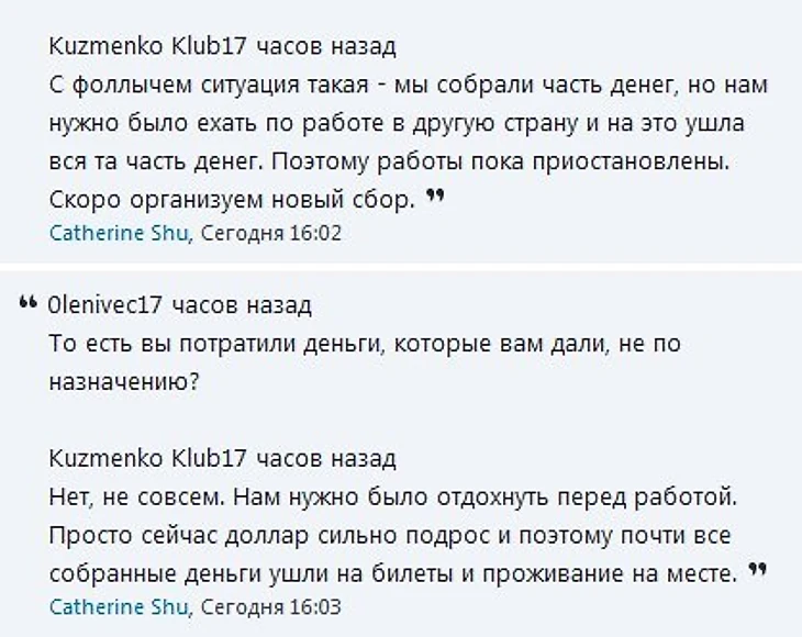 Правда, представители платформы заявили, что проект не набрал требуемой суммы, деньги не были переведены, а значит не могли быть потрачены не по назначению.
