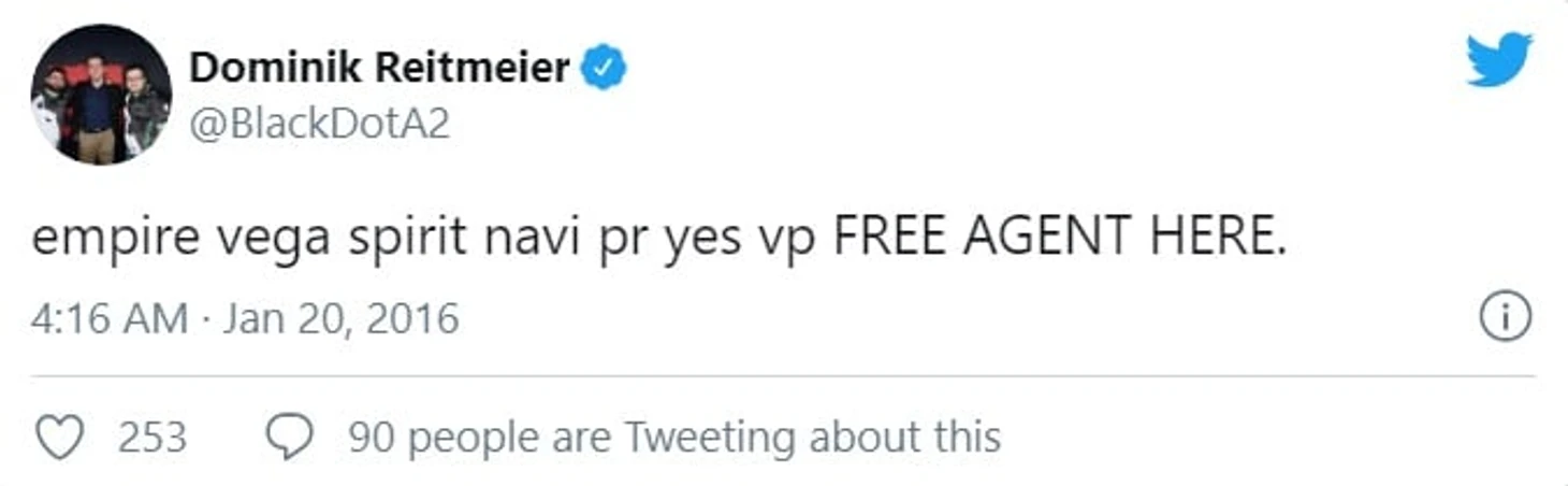 Team Tinker так и не подстроилась под его игру, так что оставаться дальше вместе не имело смысла.