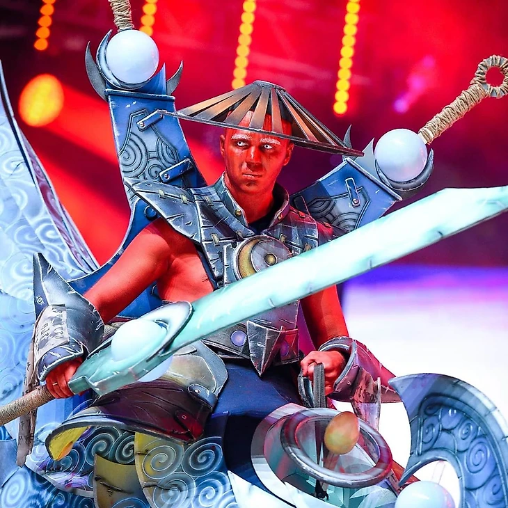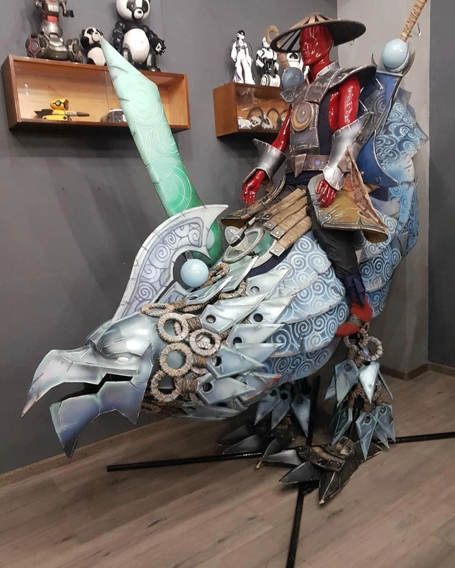 Казахстанский косплеер Владислав Shaman Гаврильченко создает костюмы с потрясающей детализацией. Он закосплеил Дизраптора в сете Stormcharge Dragoon – да, вместе с маунтом! Клинки, узоры на перьях птицы, белые брови – все мелочи на месте.