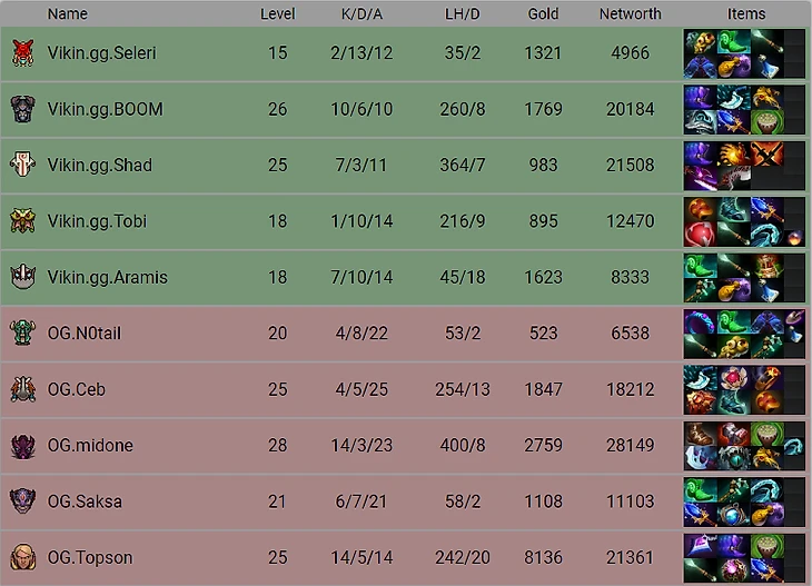 ОG так и не смогли показать нам на ЛАНе всю силу своего многообещающего ростера - карантин внес свои коррективы, Sumail покинул состав, но вот стал ли он слабее, вопрос открытый, ведь теперь на сложную линию вернулся Ceb, один из сильнейших ( а по итогам последних TI - точно сильнейший) хардлейнеров Солнечной системы. Вопрос был в другом - как поделят первую и вторую позицию номинальные мидеры MidOne и Topson. В соперниках непростые Vikin.gg, имеющие в пуле неприятных Бруду и Мипо, к тому же поучаствовавшие в забавном трештоке перед матчем, заявив, что готовы уничтожить OG.