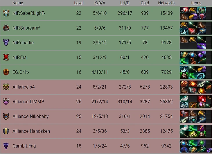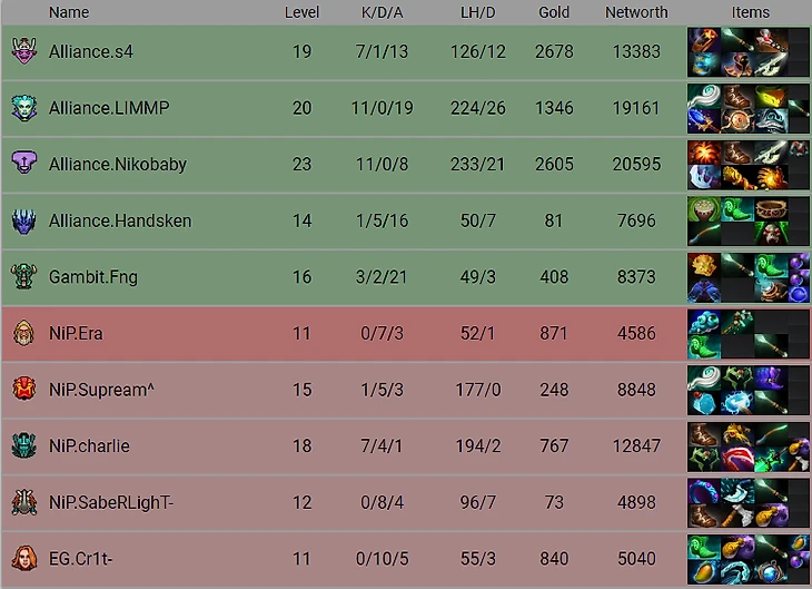 Эта карта была на 10 минут дольше предыдущей, но поверьте, интриги в ней было не больше, чем на первой. Limmp на ласт пике выqграл карту практически в соло ( посмотрите на его статистику). Сильные ультимейты NiP некjторое время сдерживали Alliance, но в конечном итоге они они достигли критического перефарма ( 25К на 30-й) и снесли оппонента. Уверенная победа на карте и в матче от Alliance. Самое время писать размышления на тему " А вот SoNNeiko бы смог..."