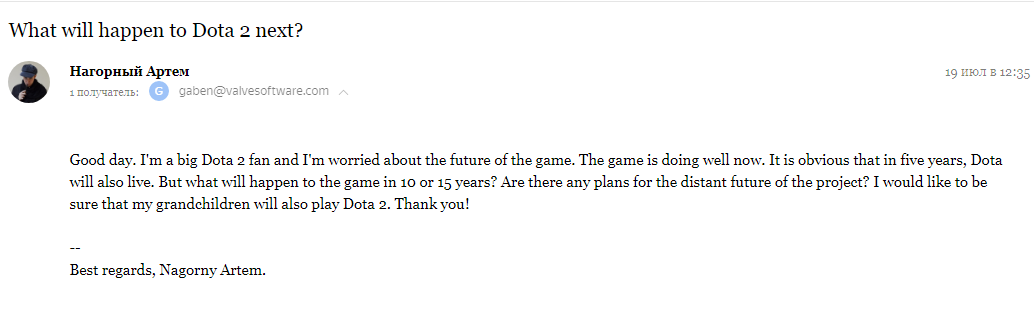 И тут мы подошли к основной моей мысли. Как я сказал, Dota 2 не деградирует, а стагнирует. Не хочется плакать, что раньше было лучше и сейчас игра умирает. Это не так, она живее всех живых. В ближайшие 5 лет с Dota 2 все будет отлично. Но что будет через 10? А через 15? Есть ощущение, что Valve то ли боятся развивать игру, то ли не знают – как это делать. Кстати, вопросы выше я задал напрямую Гейбу Ньюэллу. Но он пока не ответил. Возможно, занят в Новой Зеландии.