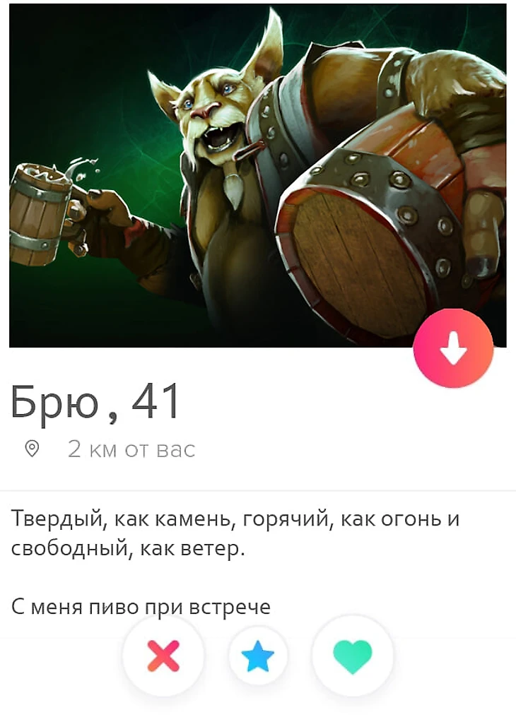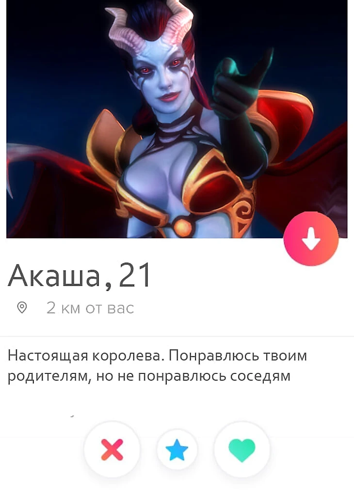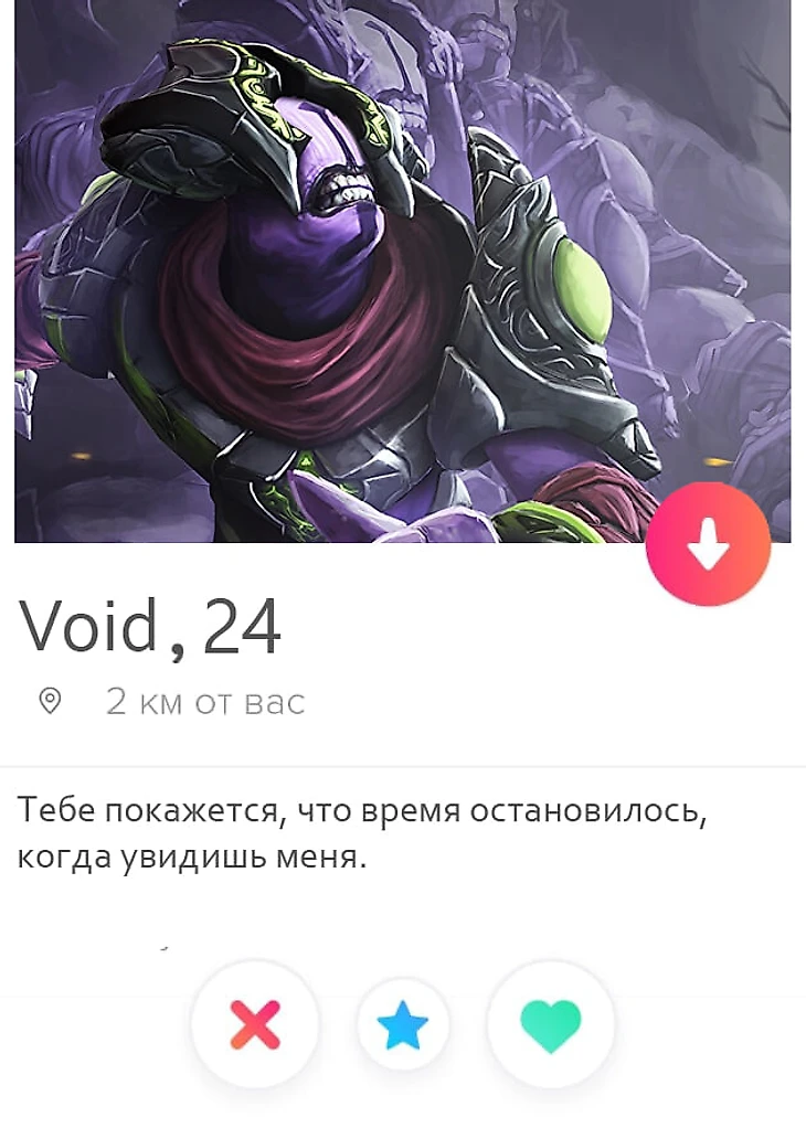 В реальном мире есть очень много возможностей для знакомства. Люди встречаются на учебе, работе, вечеринках и интернете, но во вселенной Доты таких возможностей нет. Фантазируем, как бы знакомились герои Доты в тиндере.