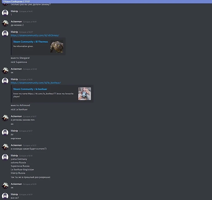 – Да. Мы ведь уже брали стендином игрока, который играл на турнире – и этот же админ подтвердил замену. К двум часам, в день финала, я нашел игроков на замену – и написал тому же человеку с уточнением, все ли в порядке. Спрашивал несколько раз.