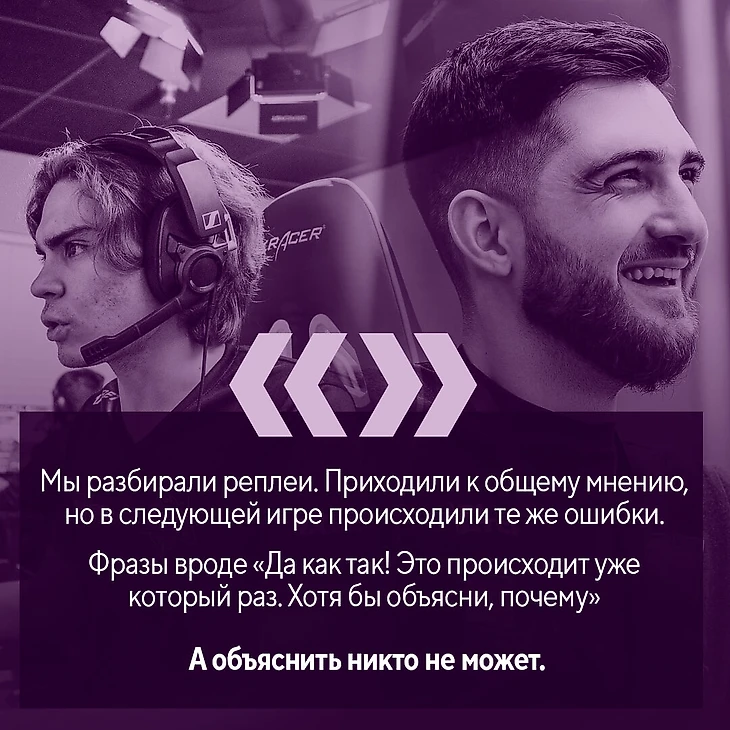 – Мы постоянно смотрели реплеи и выясняли, почему игра пошла под откос, с какого момента, из-за кого. Обсуждали командой, приходили к общему мнению, но в следующей игре происходило то же самое. А когда мы начали спрашивать с людей адресно, никто не мог ответить. Вот это и есть стена: ты нашел проблему, но не знаешь, как ее решить.