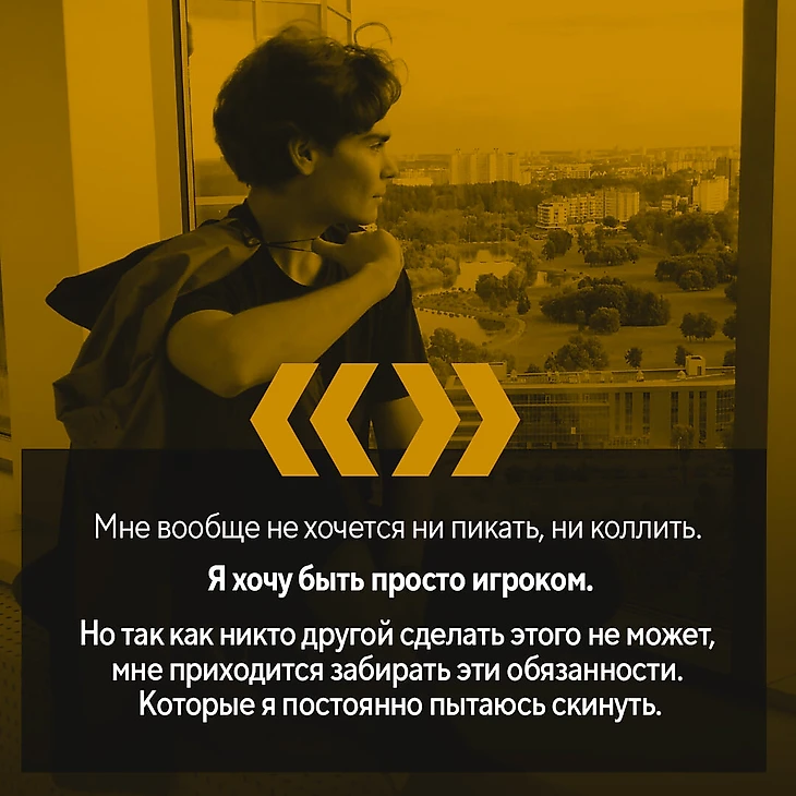 – Наверное, кроме Espada, я не играл в команде, где кто-то хотел привнести свои идеи. С моей точки зрения все выглядит так: мне вообще не хочется ни пикать, ни коллить. Я хочу быть просто игроком. Но так как никто другой сделать этого не может, мне приходится забирать эти обязанности. Которые я постоянно пытаюсь скинуть.