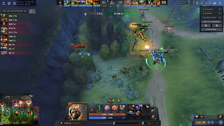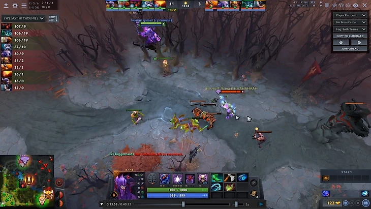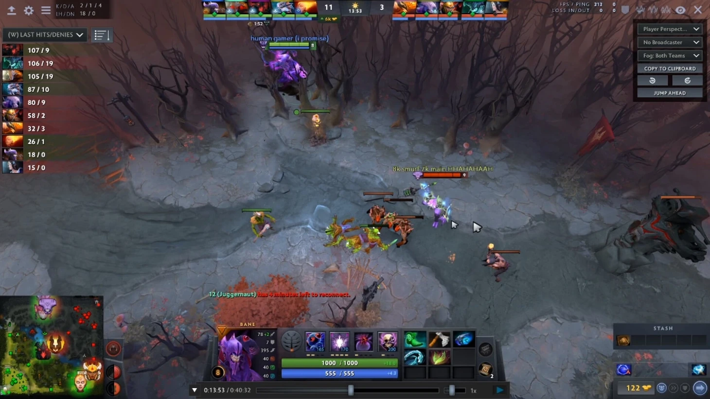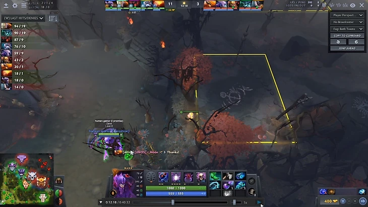 Бэйн проел себе путь топориком через лес, спрятался в елках и поставил вард, чтобы видеть Войда. Все что осталось сделать Бейну – срубить еще одно дерево и использовать ультимейт на вражеского керри. Конкретно этот ганг закончился неудачно, но возможности для таких выходов безграничны.