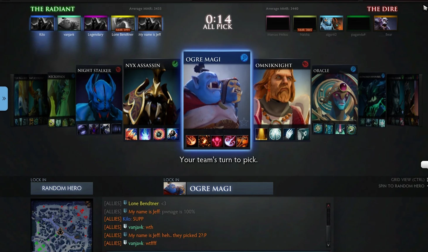 Что делать, сейчас хочется зарандомить героя, но боязно получить Мипо или Бруду? Раньше в Доте была прекрасная кнопка «spin to a random hero», которая не выбирала, но переключала на случайного героя. Таким образом, можно было безопасно выбирать случайного героя без казусов.