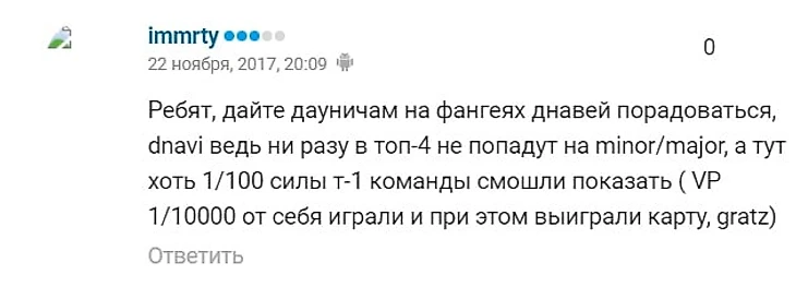 Вот только этот турнир запомнят как мейджор, на котором Virtus.pro заняли 6-е место (тогда DPC-очки получали только в топ-4), а NAVI как раз уступили лишь в полуфинале нижней сетки и получили 4-е место.