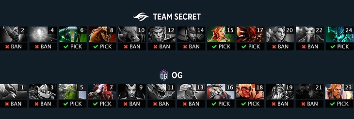 А OG этому были только рады. К мидгейму у них было не только преимущество по золоту, но и инициатива на карте, хотя у Сикрет весь драфт почти идеально подходил для контры Виспа и Свена. ОГ дрались так скоординировано, что Сикрет просто не могли качественно скинуть свои кнопки.