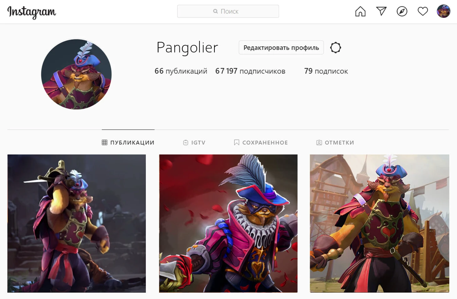 Если бы в Доте был инстаграм, то именно таким. Брюмастер бы путешествовал, Пудж посвятил свою страничку мясу, а Пангольер выкладывал только собственные фотографии.