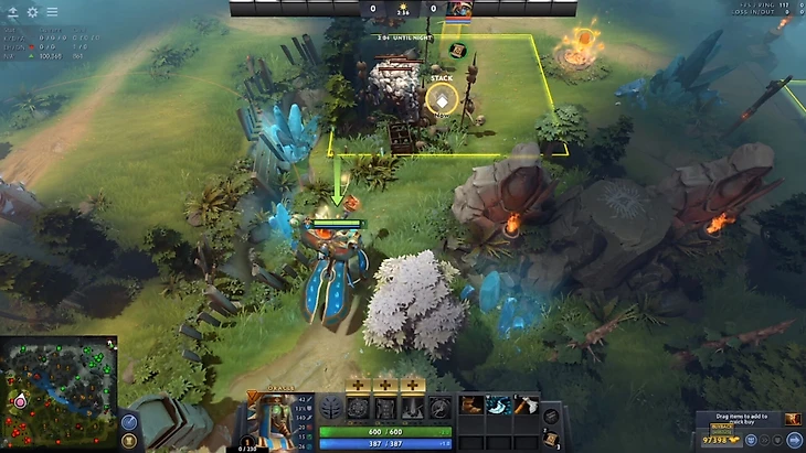Лагерь древних крипов за сторону света почти невозможно стакнуть так, как это предусмотрела Valve, но с топориком все получается гораздо проще – нужно ударить крипов на 55-й секунде и повести их в другую сторону.
