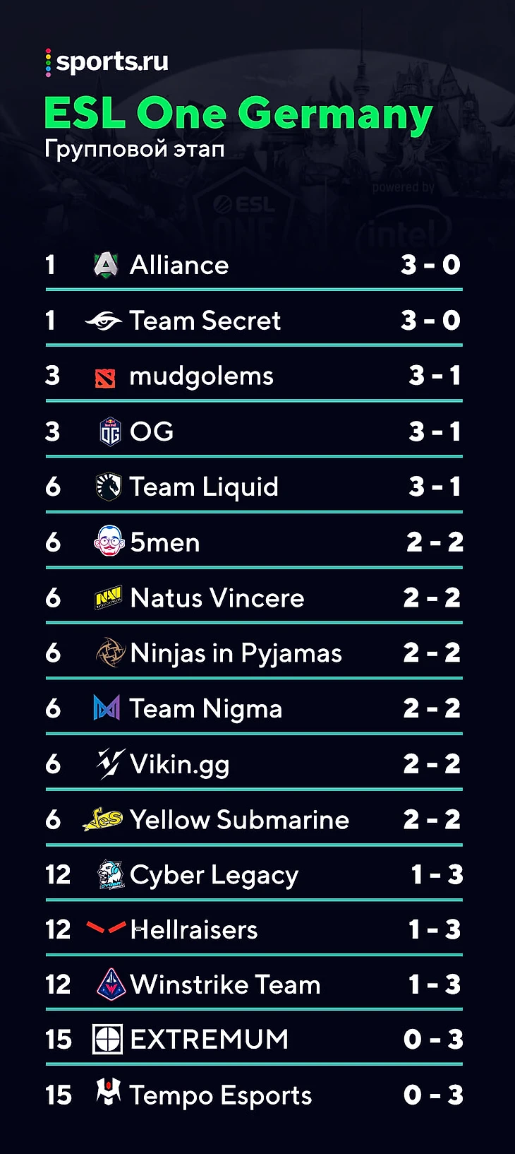 5 октября начался ESL One Germany, крупнейший турнир октября для 16 команд из Европы и СНГ. Продлится он до 1 ноября, а призовой фонд составит $400 тыс.