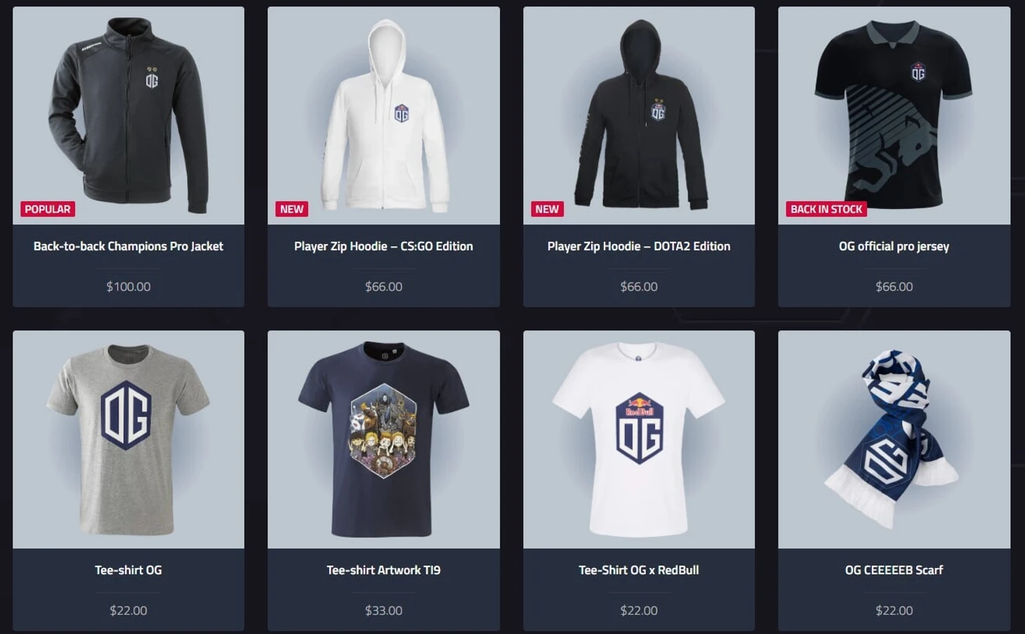 Liquid пока далеко впереди всех: выпускают новую одежду без привязки к сезонам в киберспорте, сотрудничают с Marvel. Кроме Alliance, у европейских организаций вполне удобные сайты с базовым набором вещей, который они сами и продают.