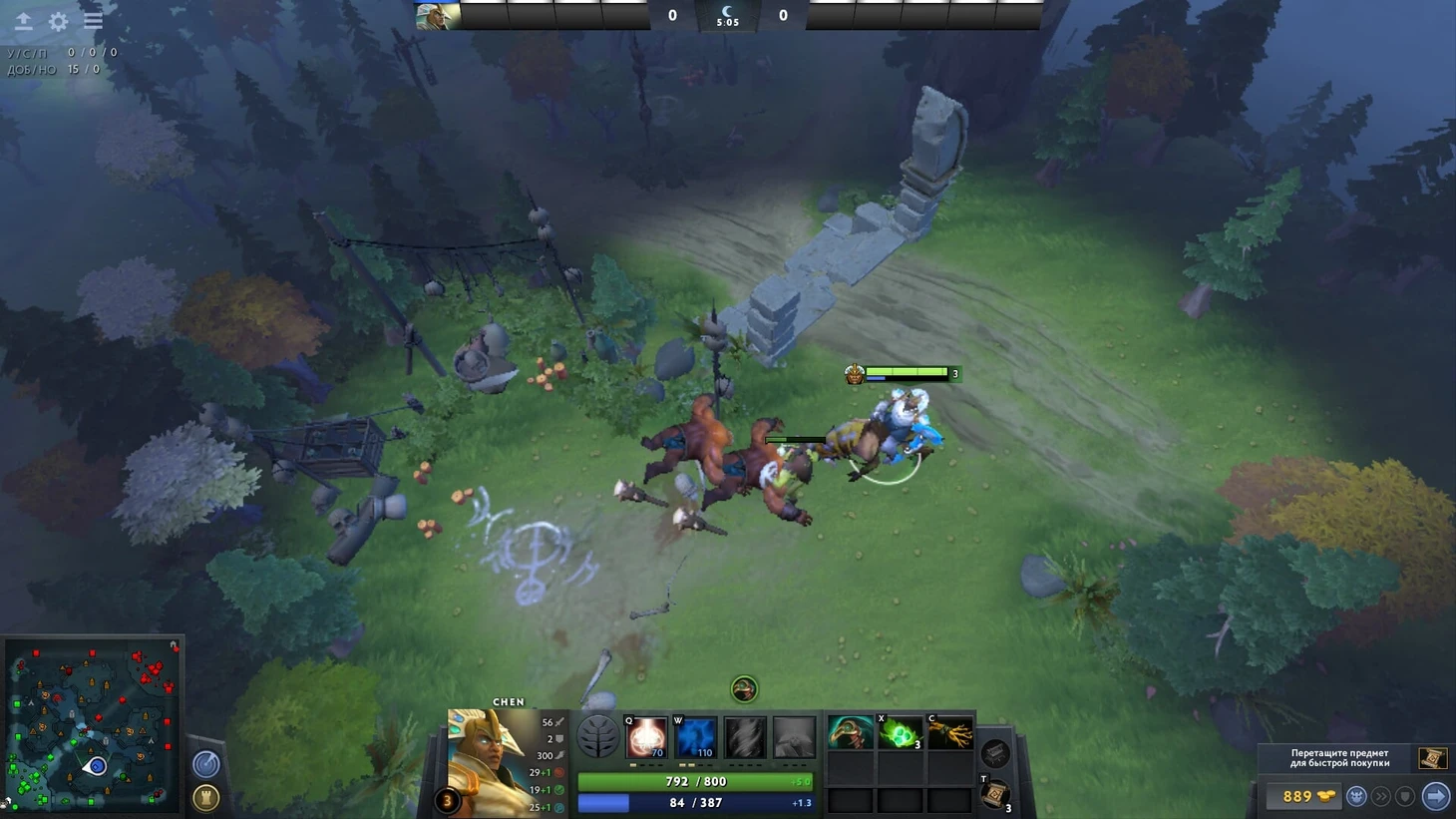 Стартовый закуп: 2 ветки, топорик, цирклет, танго, 2 кларити. Качаем второй скилл. Расходники: 2 фласки, 3 кларити