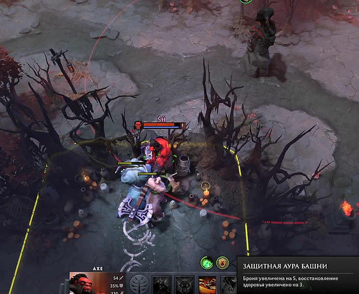 Акс хочет зачищать средние лагеря, однако мы все равно начинаем за тьму, ведь за эту сторону есть небольшой лайфхак. Возможно фармить средний лагерь под аурой т2 башни, увеличивающая броню на пять и регенерацию на три:
