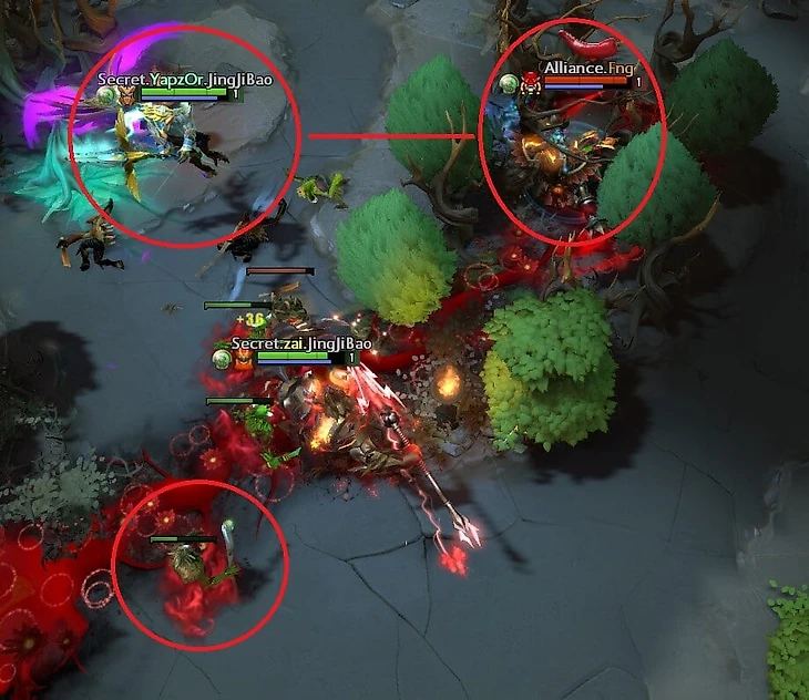 При этом Secret сразу нацелились именно на фраг, ведь Yapzor пошел в обход в момент, когда Fng только кидал Stroke of Fate.
