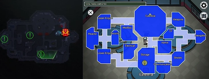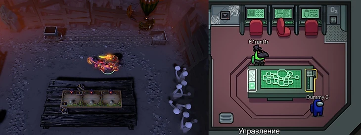 Единственные различия – ландшафт в комнатах. К примеру, в Доте комната «Щиты» – пустое пространство, а в Among Us есть небольшой проход к точке квеста: